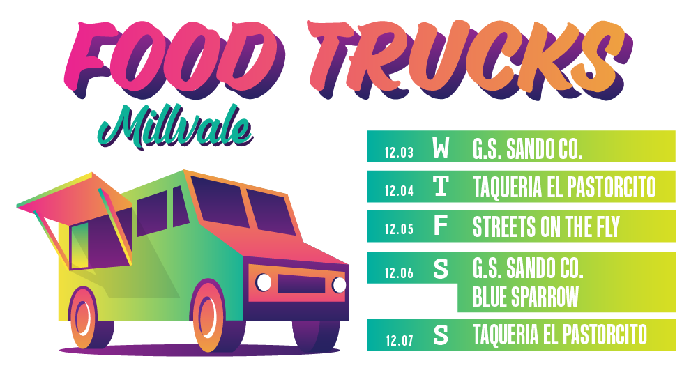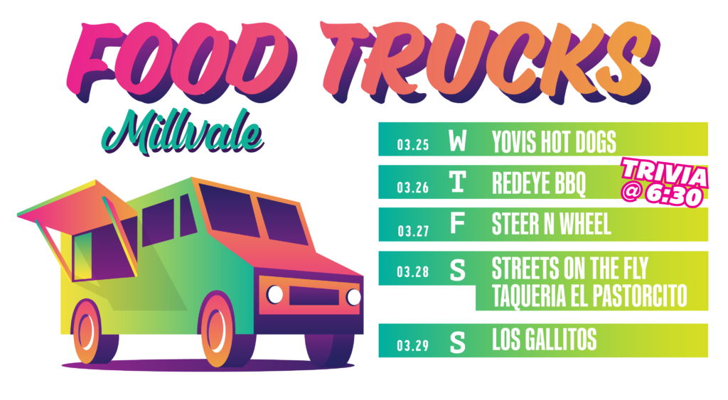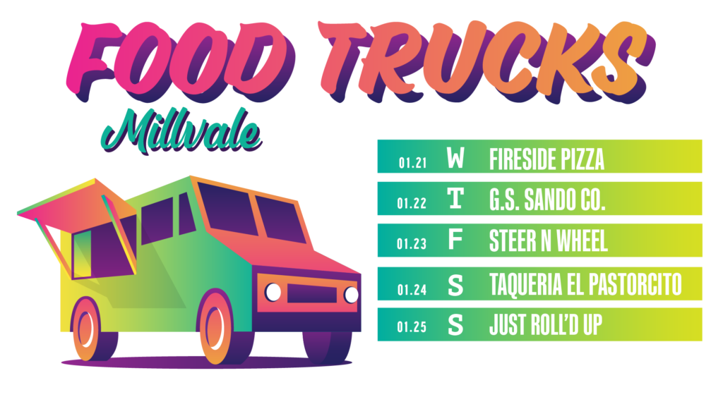 If you would like to get your Food Truck on our schedule, please select “Become a Food Truck Partner” in the form on our contact page to submit your truck for consideration.